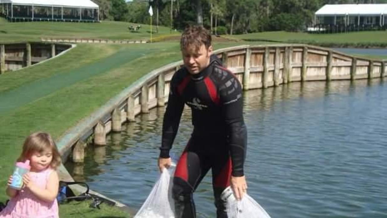 Suya düşen topun peşine kimse düşmediği için Best gibiler, tüple su altına dalıp toplayabildiği kadar golf topunu çantasına yüklüyor: "Mısır tarlasında çalışıyormuş gibiyim."