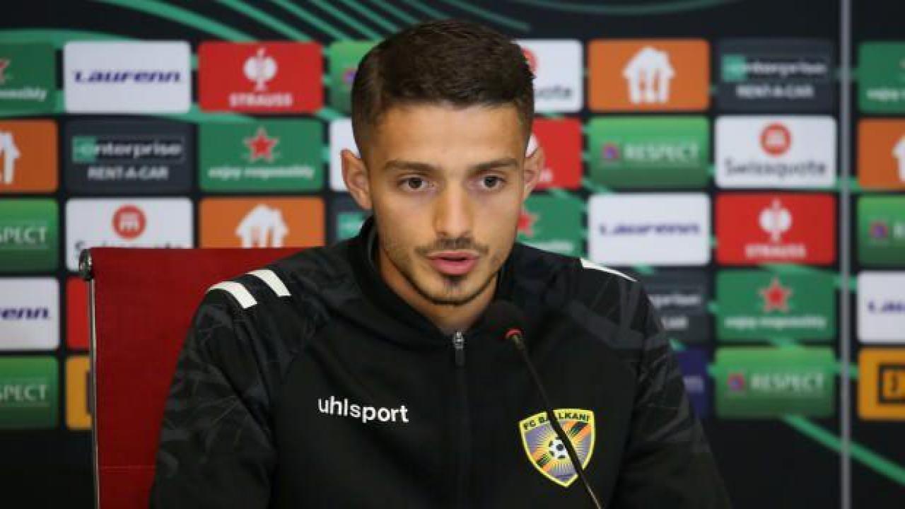 Kosova temsilcisi Ballkani’de forvet oyuncusu Albion Rrahmani, UEFA Avrupa Konferans Ligi'nde yarın Sivasspor'la oynayacakları maç öncesi Sivas Yeni 4 Eylül Stadyumu’nda basın toplantısında açıklamalarda bulundu.