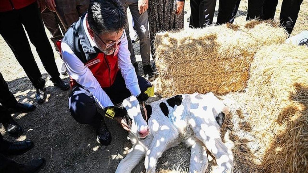 Yumaklı, işletmede yeni doğan ve kayıt altına alınan bir buzağının küpeleme işlemini de yaptı.