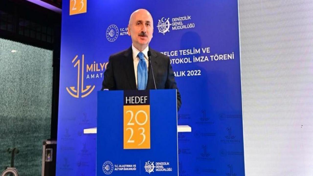 Bakan Karaismailoğlu, "Son 50 yılda, yük hacminin 20 kattan daha fazla büyüdüğü denizcilik, en stratejik sektör konumundadır. Ülkemizde 2021 yılında hacim olarak ithalat amaçlı yüklerin yaklaşık yüzde 93'ü ihracat amaçlı yüklerin de yaklaşık yüzde 81’i denizyolu ile taşınmıştır. Bugün, 31,3 milyon detveyt tonluk kapasitemizle, küresel deniz ticaret filosu olmasıyla dünya sıralamasında bir basamak daha çıkmayı ve 14. sıraya yükselmeyi öngörüyoruz. Ayrıca, Türk Bayraklı gemi tonajımızın da uzun zaman sonra, bu yıl artacağını görüyoruz. 2002 yılında yalnızca 37 olan tersane sayımızı 84’e, 149 olan liman sayımızı ise 217’ye çıkardık. Dünya genelinde konteyner elleçlemelerinde yüzde 1,2’lik düşüş, toplam yük elleçlemesinde yüzde 3,8’lik azalma kaydedildi. Ancak, ülkemiz limanlarında elleçlenen konteyner miktarı bir önceki yıla göre yüzde 8,3 arttı ve geçen yıl 12,6 milyon TEU olarak gerçekleşti. Elleçlenen toplam yük miktarımızı ise bir önceki yıla göre yüzde 6 oranında artırdık, 526 milyon tona yükselttik. Büyümemizi bu yılda sürdüreceğimizi ve 2022 yılı sonunda toplam 545 milyon ton yük elleçleneceğini öngörüyoruz. 2022 Ocak-Ekim döneminde, Rusya-Ukrayna savaşına rağmen geçen yılın aynı dönemine nazaran limanlarımızda elleçlenen yük miktarında yüzde 5 artış kaydedildi. Dünyada yaşanan ekonomik krize, ülke ekonomilerindeki küçülme ve durgunluk tehlikesi ile savaşlara rağmen, ülkemizin sadece deniz ticaretinde elde ettiği bu rakamlar yatırım, istihdam, üretim, ihracat ve cari fazla hedefi ile yürüdüğümüz yolda yazdığımız başarı hikâyesinin önemli bir parçasıdır" diye konuştu.