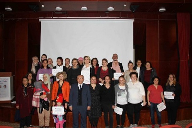 Kadın ve Aile Hizmetleri Müdürlüğü tarafından ‘Mutlu Ev Mutlu Çocuk’ Projesi kapsamında düzenlenen 9 haftalık eğitim programını tamamlayan ve sertifika almaya hak kazanan Kartallı annelere sertifikaları törenle verildi.