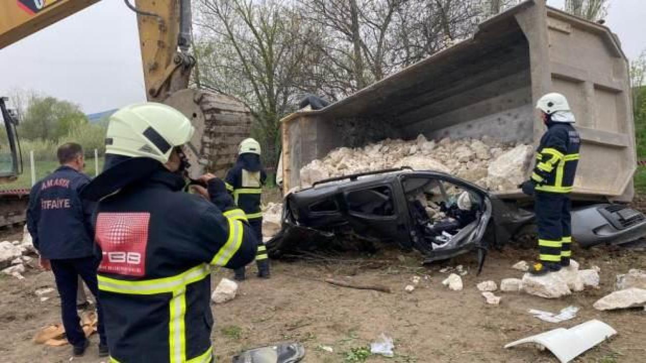 Edinilen bilgiye göre, H.K. (59) idaresindeki 05 RC 613 plakalı kamyon, Göynücek ilçesine bağlı Çulpara köyü mevkisinde Cemal Dokuyan'ın kullandığı 19 NE 286 plakalı hafif ticari araçla çarpışarak üzerine devrildi. Kamyonun kasasında bulunan büyük taşlar hafif ticari aracı içine doldu. Araç sürücüsü Dokuyan olay yerinde hayatını kaybetti. Araçta bulunan eşi Kibar Dokuyan ve kamyon sürücüsü yaralandı. Kazanın bildirilmesi üzerine olay yerine 112 acil servis, itfaiye ve jandarma ekipleri sevk edildi.
