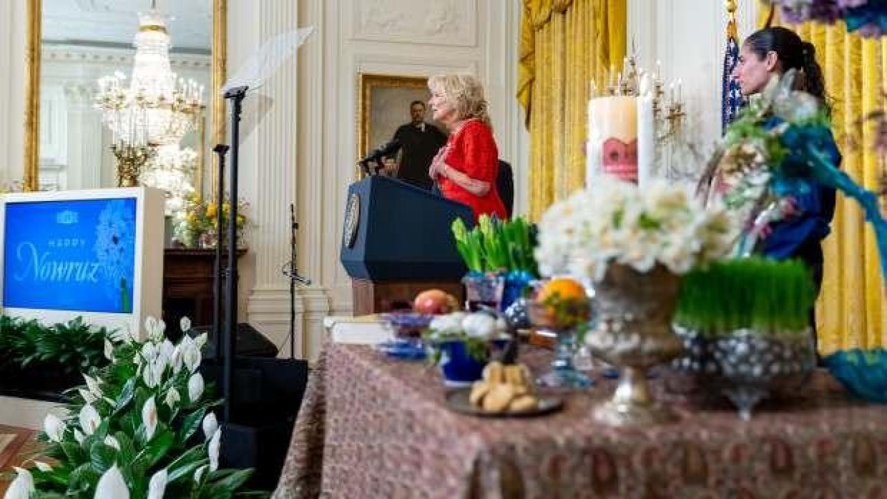 Biden konuşmasında, "Jill ve ben -Kamala ve Doug ile birlikte- yeni bir ulusal geleneğe ev sahipliği yapmaktan onur duyuyoruz: Beyaz Saray'da düzenlenen bu ölçekteki ilk Nevruz resepsiyonu" ifadelerini kullandı.