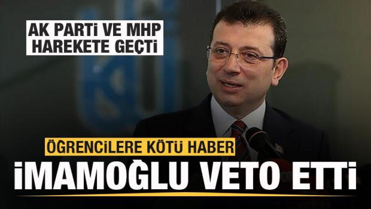 İstanbul Büyükşehir Belediyesi Başkanı Ekrem İmamoğlu, AK Parti ve MHP gruplarının oluşturduğu Cumhur İttifakı'nın toplu ulaşımda öğrencilerin zamdan muaf olmasını sağlayan kararı veto etti.
