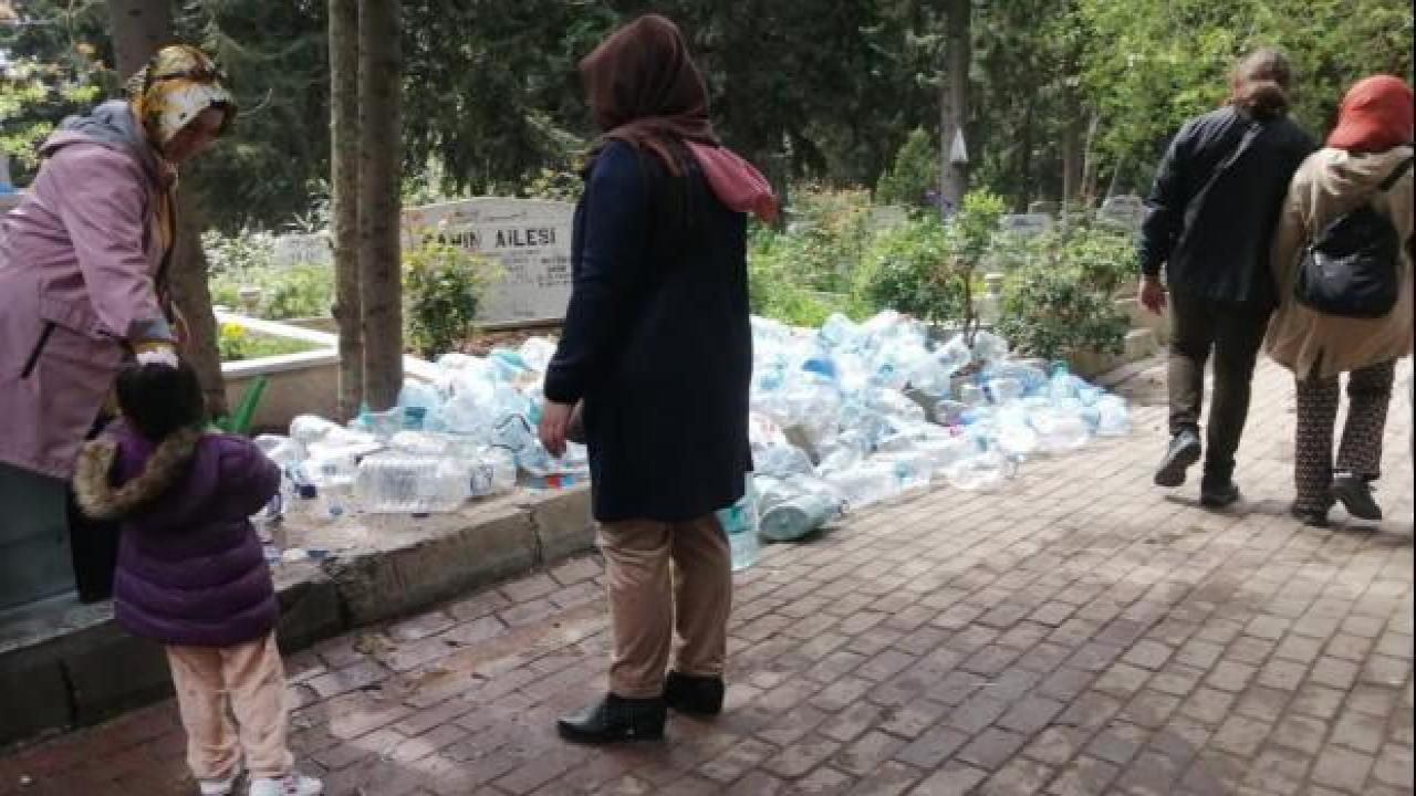 Litrelik su şişelerinin mezarların etrafında çöp yığını oluşturduğu anlar objektiflere yansıdı.