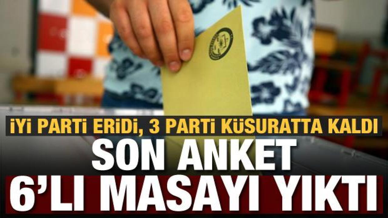 Araştırmada Yeniden Refah Partisi yüzde 2 ile dikkat çekerken, altılı masa üyeleri Saadet Partisi, DEVA Partisi ve Gelecek Partisi yüzde 1’i aşamadı.