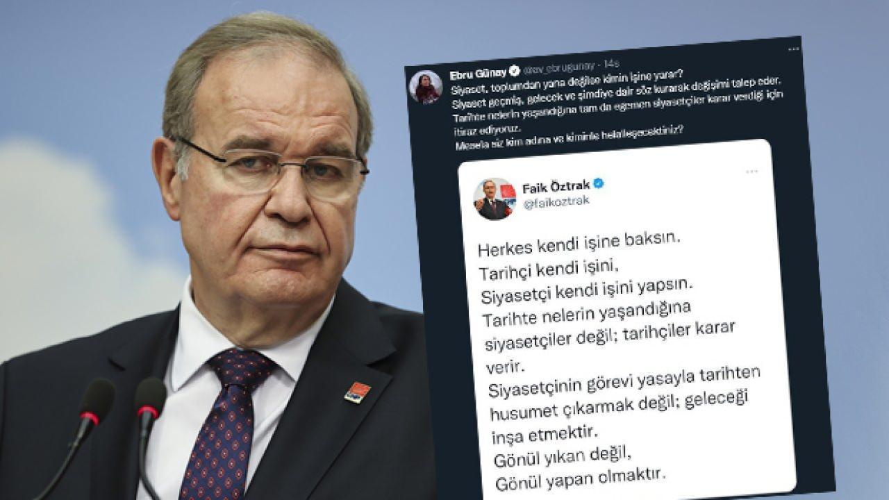 HDP Sözcüsü Ebru Günay, CHP Sözcüsü Faik Öztrak'ın sözde Ermeni soykırımı konusunda yaptığı açıklamaları alıntılayarak tepki gösterdi.
