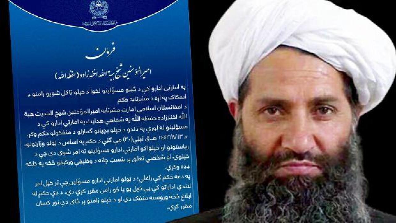 Taliban lideri Hibetullah Ahundzade, yayımladığı kararnameyle yetkililere, oğullarını ve diğer akrabalarını görevden alma talimatı verdi.