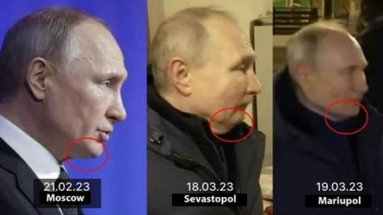 Putin'in farklı zamanlarda çekilmiş fotoğraflarını paylaşan Ukraynalı yetkili, Putin'in çenesinin ve boyun bölgesinin farklılık göstermesine de vurgu yaptı.