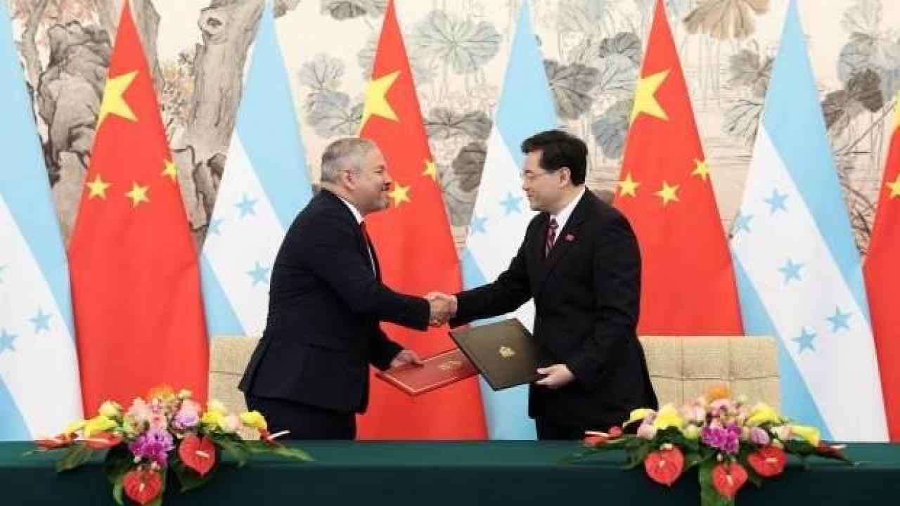 Çin Dışişleri Bakanlığından yapılan açıklamaya göre, Bakan Çin Gang ile Honduraslı mevkidaşı Eduardo Reina'nın diplomatik ilişkilerin kurulmasına ilişkin ortak bildiriyi Pekin'de imzaladı.
