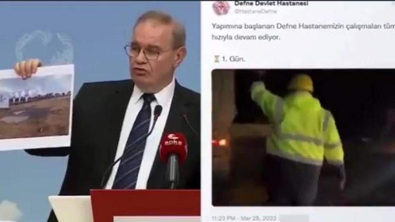 CHP Sözcüsü Faik Öztrak bugün yaptığı açıklamada Defne Devlet Hastanesi inşaatı hakkında "Göstermelik beton döküp, sorumluluğunun üstünü örtmeye çalışıyorlar. beton mikserleri sahaya sürülüyor. Döktüğü betonu da sosyete pazarındaki çığırtkanlar gibi "Deniz kumu değil ha! Mıcırıyla, çimentosuyla demiriyle dört dörtlük" diyerek bir de pazarlıyor. Ama pazarladığı betonun altında ne doğru dürüst bir temel var ne de doğru dürüst bir demir kalıp var. Birkaç metrekare zemin üzerinde yalapşap döşenen demirler, üzerine de dökülen bir beton. her işleri yalan" dedi.
