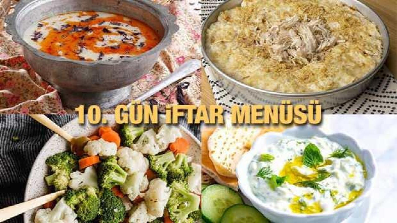Onuncu gün iftar menümüze, bundan öncesinde olduğu gibi yine sıcak ve midemizi yormayan bir çorba tarifi ile başlıyoruz. Hemen ardından kolaylığı ve lezzetiyle belki de bundan sonra sofralarınıza hep konuk edeceğiniz bir ana yemek ve sonrasında sağlıklı olduğu kadar lezzetliyle de gönlünüzü çelecek bir salata ile devam ediyoruz. Tatlıya biraz ara veriyor ve ana yemeğin favorisi olan eşlikçi ile menümüzü sonlandırıyoruz.