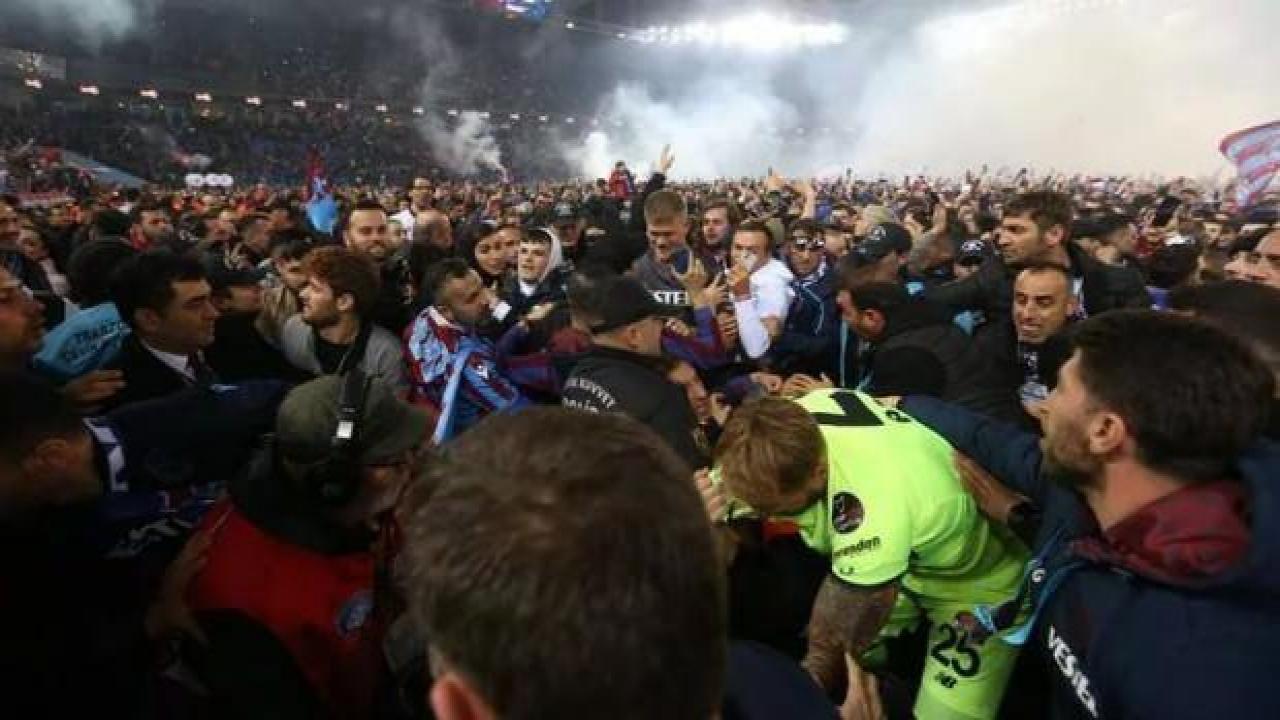 "Ancak karşılaşmanın bitimiyle sahaya inen Trabzonspor taraftarı özellikle iki futbolcumuzu darbederek en hafif tabirle çağ dışı bir görüntü sergilemeye maçtan sonra da devam etti. Sadece 5 dakika önce benzer bir görüntü yaşanmasına rağmen gerekli önlemleri alamayan güvenlik görevlilerinin yetersiz müdahalesine şahit olduk. Biz bugüne kadar olduğu gibi bundan sonra da dik duruşumuzdan vazgeçmeyecek, sahada kalmayı sürdüreceğiz. Şu konunun altını çizmek istiyoruz. Futbol sahasında futbolcu darbedilmemeli, sahalar futbolcuların canlarını zor kurtardığı yer olmamalı. Ne bizim ne de bir başka takımın futbolcusunun darp edilmesine, daha doğrusu Türk futbolunun yumruklanmasına asla seyirci kalmayacağız. Futbol Federasyonu ve kurullarının alacağı kararların, vereceği cezaların takipçisi olacağız."