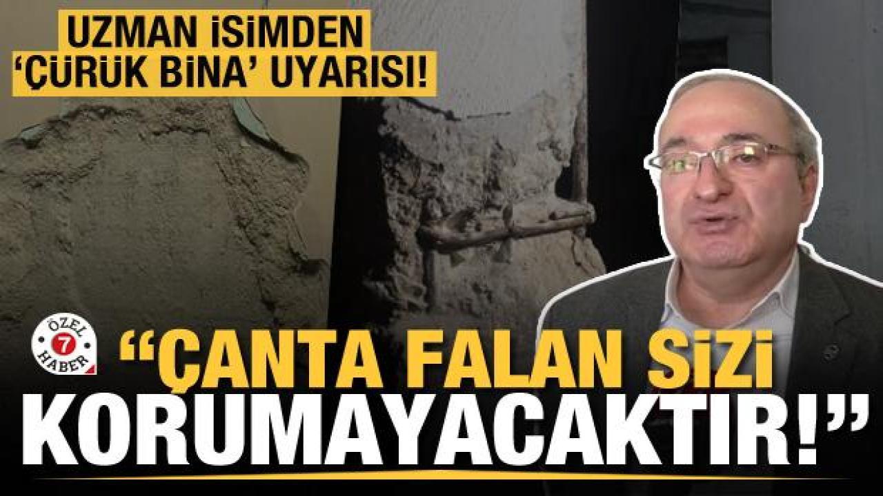 "Bina çürükse yapacak hiçbir şey yok. Çürük bina için bir yaşama kuralı yok. Yani çanta falan sizi korumayacaktır. Bina çökerse nerede yakalanacağınız ve nereden çıkacağınız belli olmaz. Çünkü bina yan yatacaktır, durduğunuz döşeme çökecektir. Çürük binada hiçbir zaman durduğunuz noktada kalamayabilirsiniz. O yüzden birinci şart bina sağlam olacak. Çürük olan binada kurtulma diye bir şey yok. Depremden sonra iki, üç dakika kendinizi kontrol etmeniz gerekmektedir. Etrafınızı kontrol etmeniz lazım. Cam kesiği var mı, herhangi bir küçük yangın çıkmış mı? O anda insanların birbirine yardım etmesi gerekiyor. İlk yardımda kanı durdurmak, yangın varsa küçüklerini söndürmek ilk anda yapılacak işler. Bunlarda ilk dakikalarda otomatik olarak yapılıyor vatandaş tarafından."