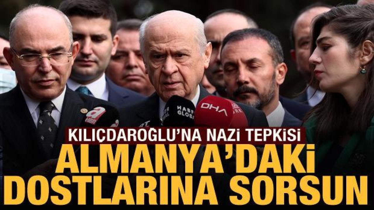 Bahçeli, gazetecilerin CHP Genel Başkanı Kemal Kılıçdaroğlu’nun "Gezi için kurulan mahkemenin Nazi mahkemelerinden farkı yok" açıklamasının hatırlatılması üzerine, "Kemal Kılıçdaroğlu Bey'in son dönemlerdeki konuşmaları çok köklü bir siyasi kurum olan Cumhuriyet Halk Partisi Genel Başkanına yakışmamaktadır. Bir taraftan Türkiye'nin kurucu partisi olarak iddia edeceksiniz, öbür taraftan Atatürk'e büyük ölçüde sahip çıktığınız iddiasını taşıyacaksınız, öbür tarafta da Atatürk'ün ve milletimizin ortaya koymuş olduğu ortak değerlerini tahrip eden her türlü konuşmayı rahatlıkla yapabilecek bir duruma gelmiştir. Eğer Nazi mahkemelerini incelemek istiyorsa Almanya’da özel dostları vardır, o dostlarından gerekli bilgileri alabilirler" diye konuştu.