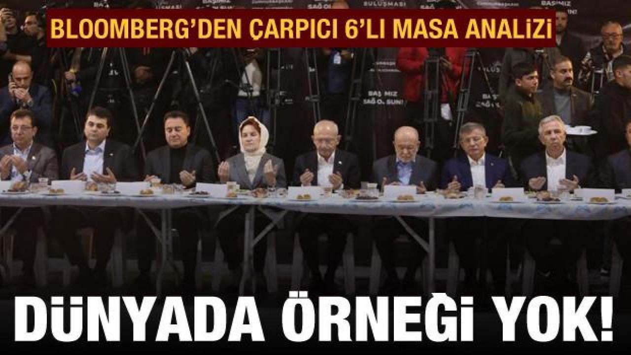 ABD'li Bloomberg'den 6'lı masa analizi geldi. Bloomberg çoklu yönetimin istikrarsızlık örneği olacağını yazdı. Cumhurbaşkanı adayı ve CHP Genel Başkanı Kemal Kılıçdaroğlu, masanın etrafındaki 5 genel başkanı, seçilmesi halinde cumhurbaşkanı yardımcısı olarak atayacak.