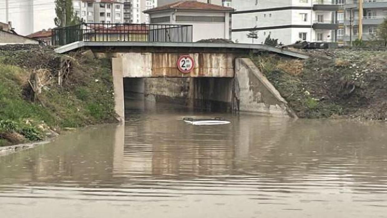 Adana Caddesi'ndeki demir yolu alt geçidinde bir araç suda mahsur kaldı.