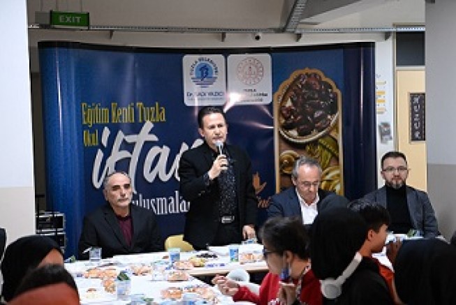 Başkan Yazıcı, Ramazan ayının başlaması ile birlikte Tuzla İlçe Milli Eğitim Müdürlüğü ve Tuzla Belediyesi iş birliğinde düzenlenen ‘Eğitim Kenti Tuzla, İftar Buluşmaları’ kapsamında Tuzla’daki okullarda bulunan öğrenci ve velileri ile iftar programında bir araya geliyor. Başkan Yazıcı’ya Tuzla İlçe Milli Eğitim Müdürü Dr. Ahmet Alireisoğlu da eşlik ediyor. Bu kapsamda ilk iftar Evliya Çelebi Kız Anadolu İmam Hatip Lisesi’nde yapıldı.