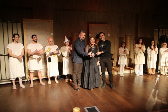 Oyunun sonunda Kartal Belediye Başkanı Gökhan Yüksel etkinliğe katılan Kültür ve Sosyal İşler Müdürü Deniz Şahin, sahneye çıkarak tüm ekibi tebrik etti ve sanata katkılarından dolayı plaket takdiminde bulundu.