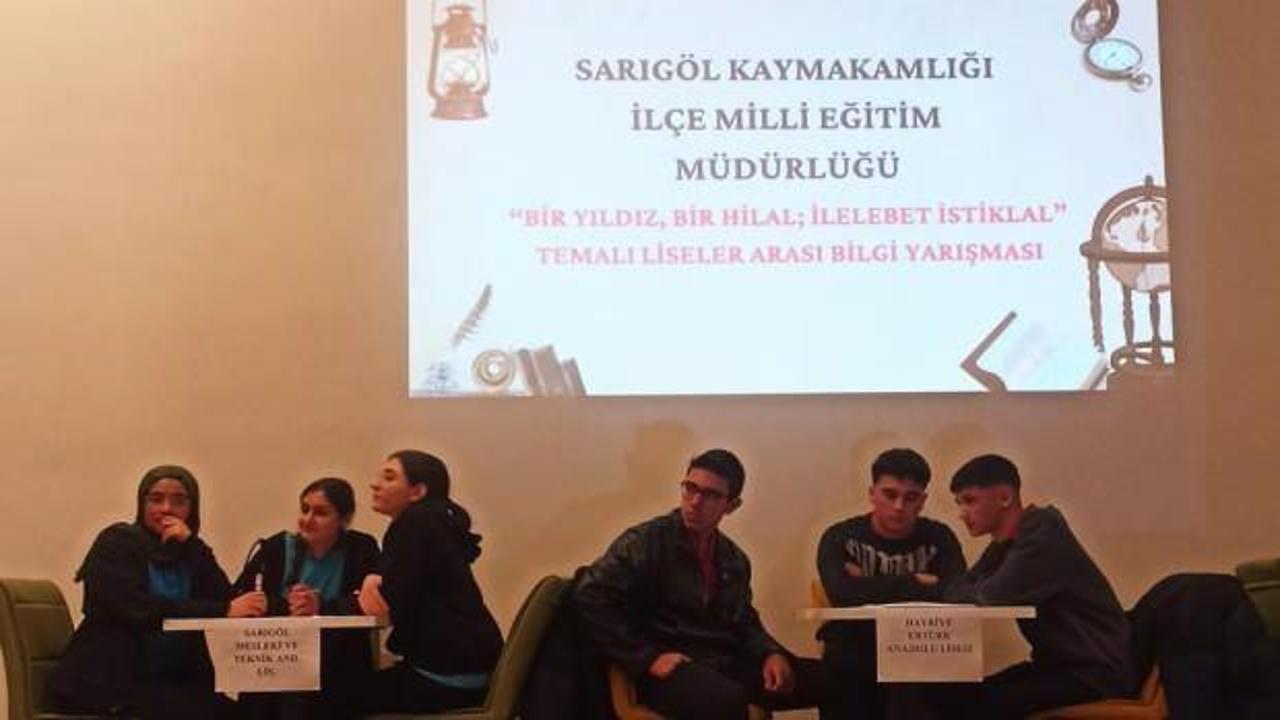 Manisa'nın Sarıgöl ilçesinde "Sarıgöl Hayriye Ertürk Anadolu Lisesi", "Sarıgöl Mesleki ve Teknik Anadolu Lisesi", "Sarıgöl Milli Egemenlik Çok Programlı Anadolu Lisesi" ve "Sarıgöl Anadolu İmam Hatip Lisesi öğrencileri", bilgi yarışmasında karşı karşıya geldi.