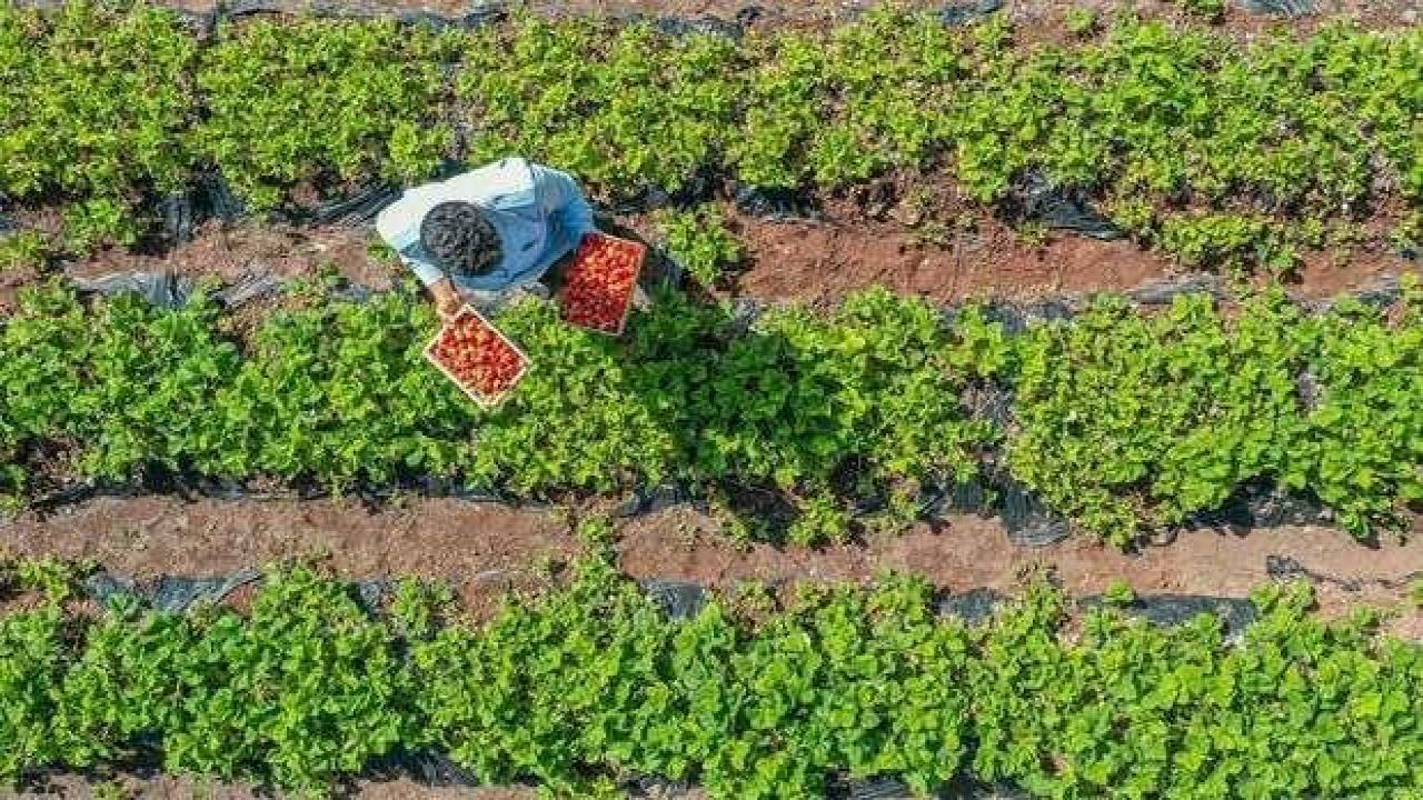 Elazığ'ın Maden ilçesinde hasadına başlanan çilekten 3 bin tonun üzerinde rekolte bekleniyor.