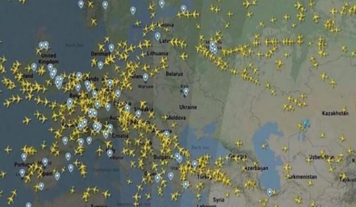 Uçuş trafiğinin durduğu hava sahası, Flightradar24.com haritasında açık şekilde göründü.