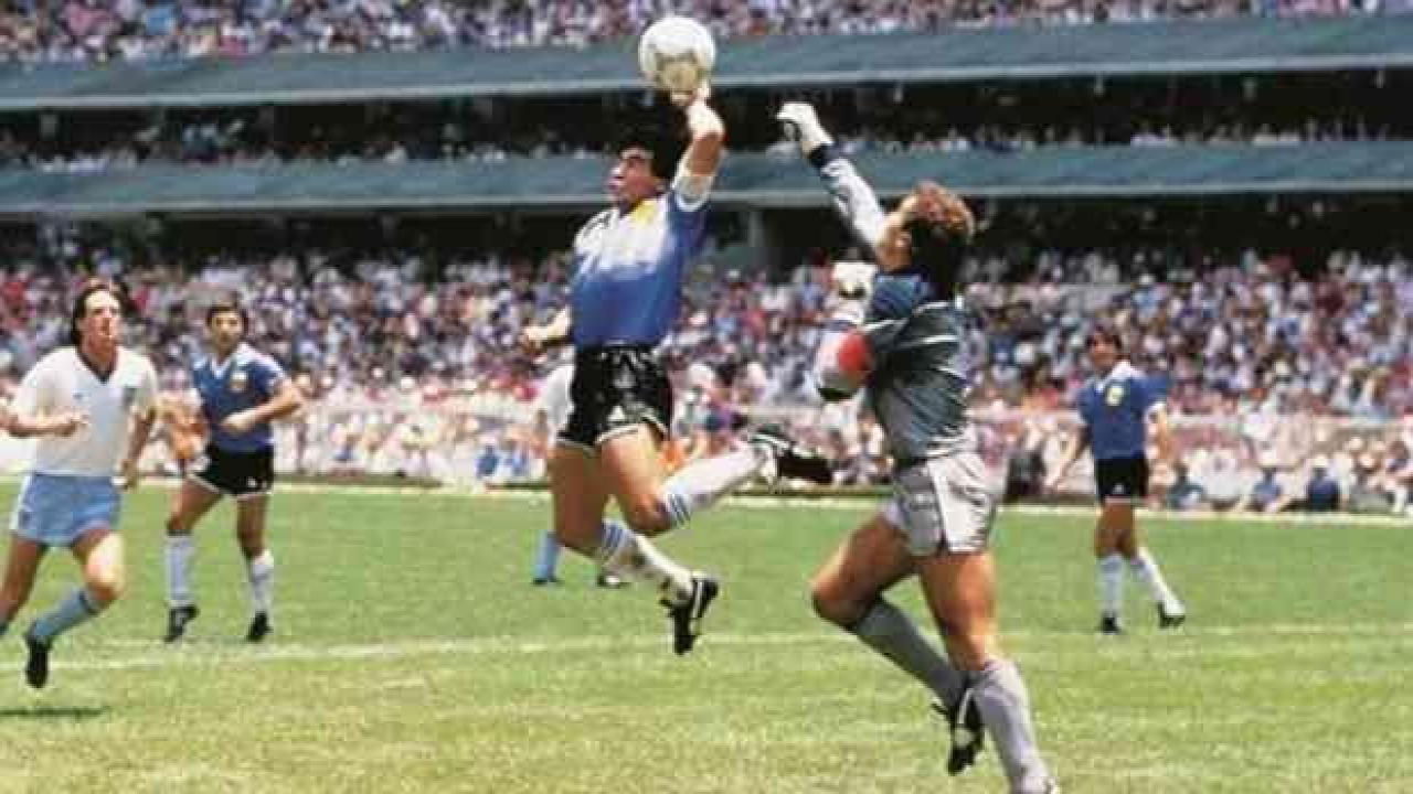 ️ Maradona, havadan gelen topa yükselip eliyle topu filelere göndermiş Arjantinli efsane attığı bu golü, 'Tanrı'nın Eli' olarak nitelendirmişti.