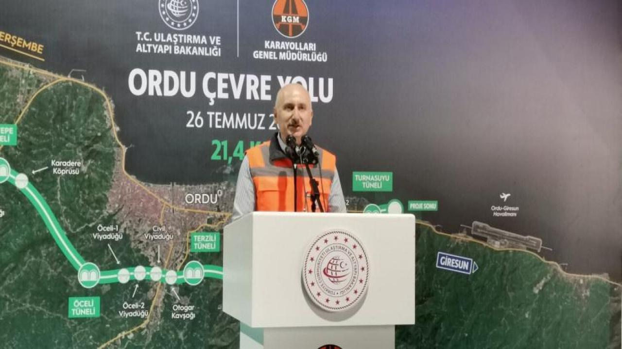 Ulaştırma ve Altyapı Bakanı Adil Karaismailoğlu, Ordu'da yapımı süren çevre yolu şantiyesinde incelemelerde bulundu, yetkililerden brifing aldı, ardından da Akçatepe Tüneli Işık Görme Töreni'ne katıldı. Törende konuşan Bakan Karaismailoğlu, kentte ulaşım yatırımları adına tarihi günlerden birini daha yaşadıklarını belirterek, kazı çalışmalarının sonuna gelinen tünel projesinin, başta Ordu olmak üzere bölgedeki diğer illeri de olumlu etkileyeceğini söyledi.
